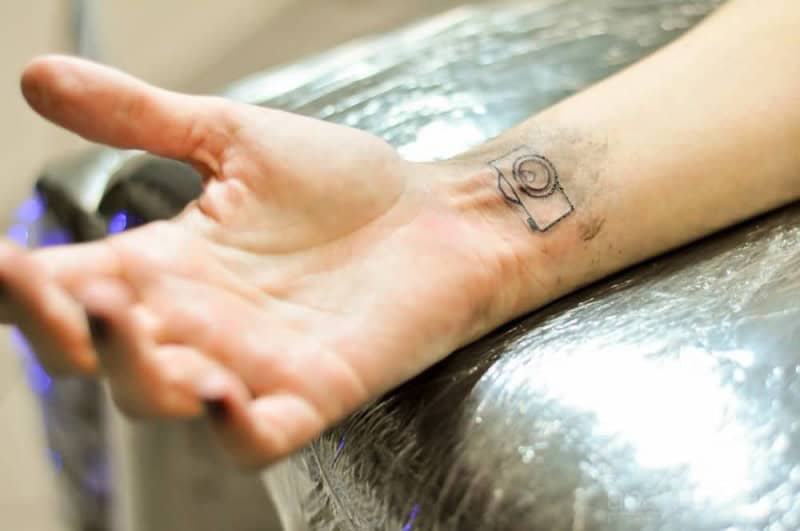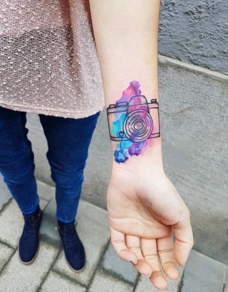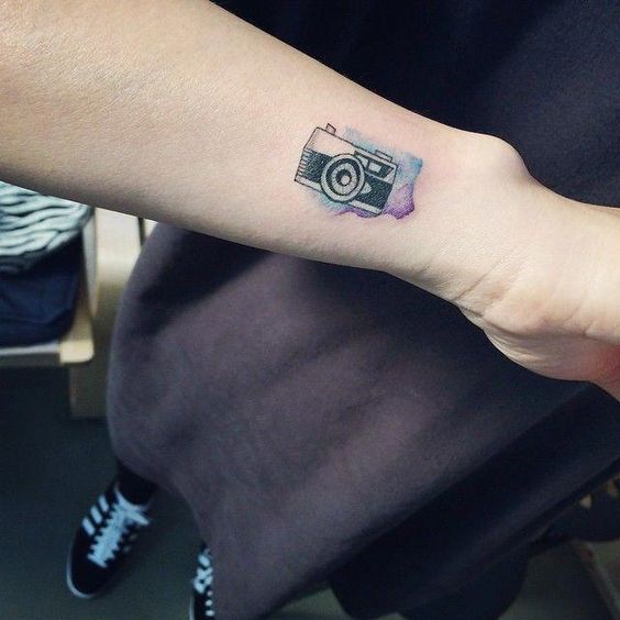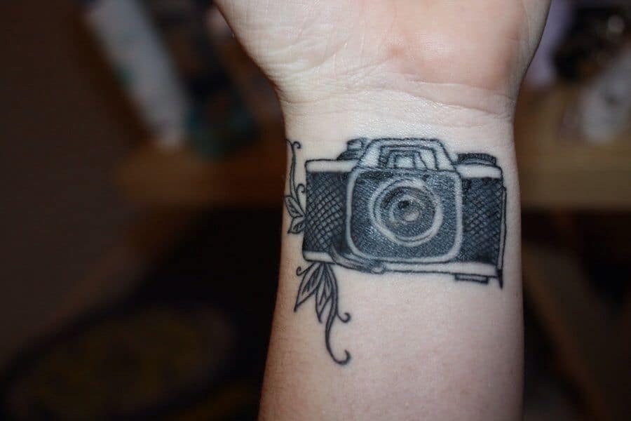 Motyw aparatu jest bardzo popularny wśród tatuaży. Taki wzór idealnie będzie wyglądał na nadgarstku. Wystarczy spojrzeć na wiele przykładów.