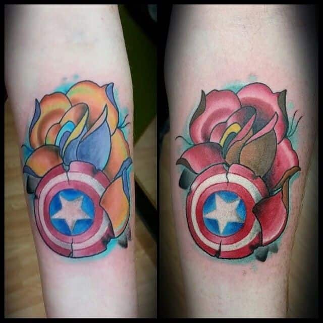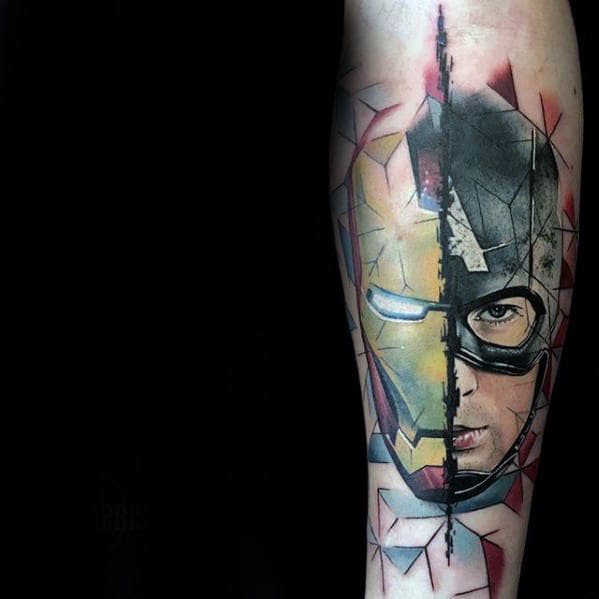 Motyw Avengers jest bardzo popularny wśród tatuaży. Taki wzór idealnie będzie wyglądał na przedramieniu. Wystarczy spojrzeć na wiele przykładów.