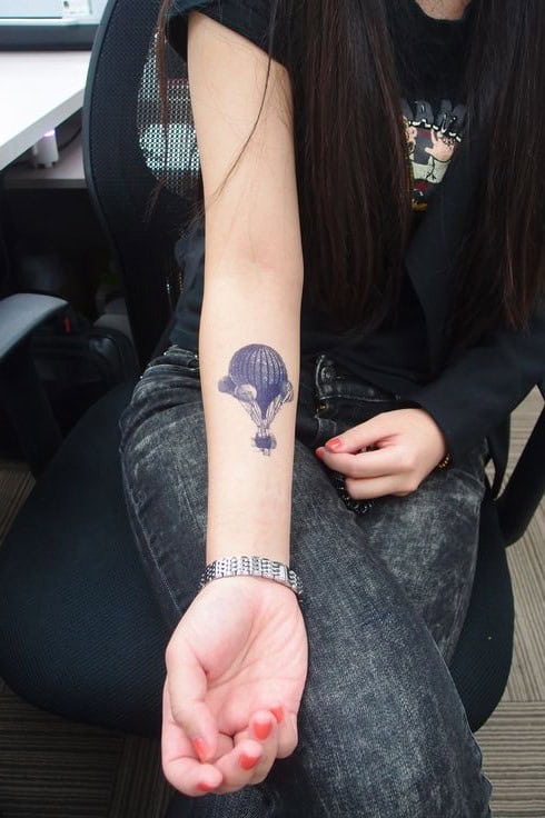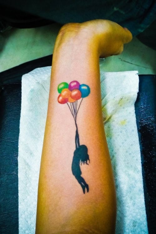 Balon na przedramieniu to idealny motyw, aby wyrazić siebie. Pasuje tam zarówno wielobarwny jak i i jednokolorowy tatuaż.