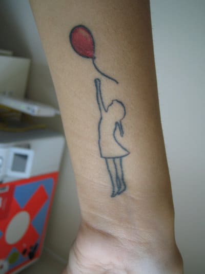Takie tatuaże nosi wiele osób i możesz się nimi zainspirować. Spójrz na przykłady tatuaży z balonem na przedramieniu.