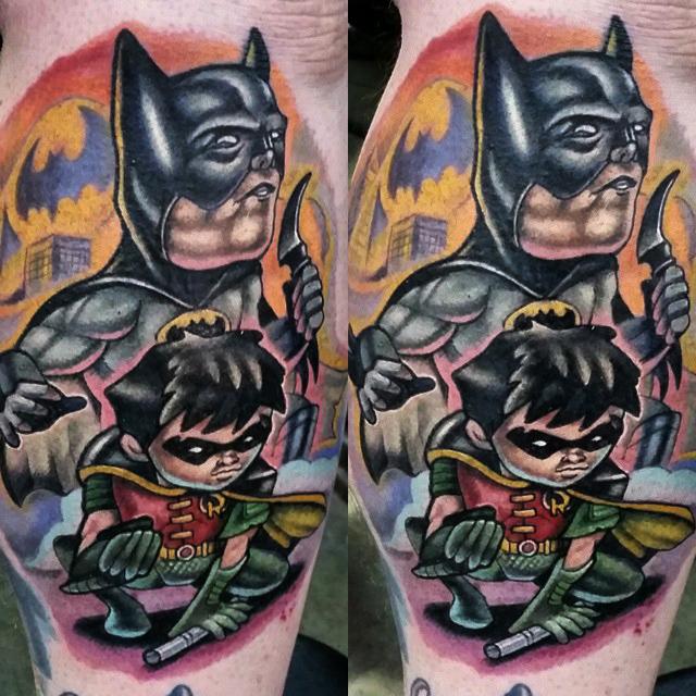 Batman i Robin to jeden z najpopularniejszych i najmodniejszych wzorów tatuażu. Motyw Batmana i Robin adoskonale wygląda na różnych częściach ciała. Tatuaże z Batmanem i Robinem to idealny tatuaż dla par.