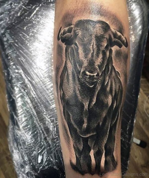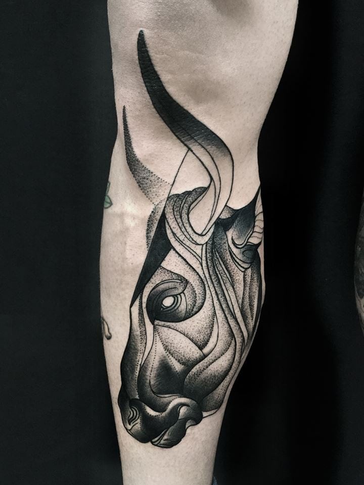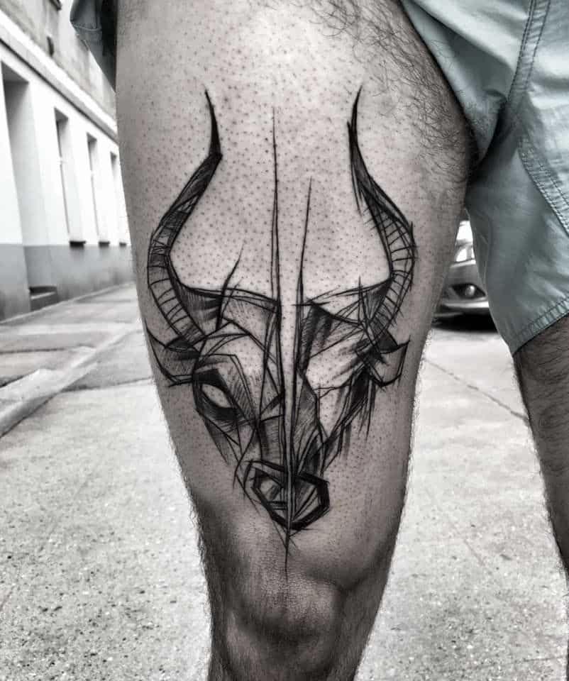 Takie tatuaże nosi wiele osób i możesz się nimi zainspirować. Spójrz na przykłady tatuaży z bykiem na nodze.