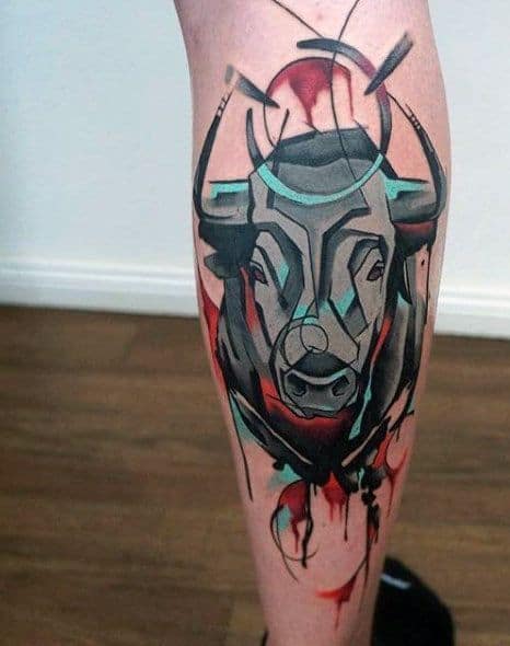 Tatuaże na nodze są bardzo modne. Nosi je wiele osób. Część z nich wybiera motyw byka. Prezentuje on się na znakomicie na tej części ciała.