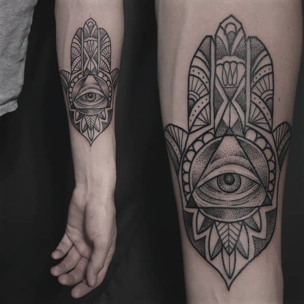Tatuaż z Chamsą na przedramieniu może być zarówno subtelnym, jak i bardzo efektownym. Wybór należy do Ciebie! Możesz zdecydować się na prosty, jednobarwny wzór lub bogaty w detale, kolorowy tatuaż, który będzie prawdziwym dziełem sztuki.