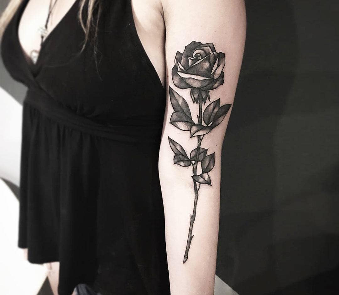 Czarna róża na ramieniu – wzory tatuażu