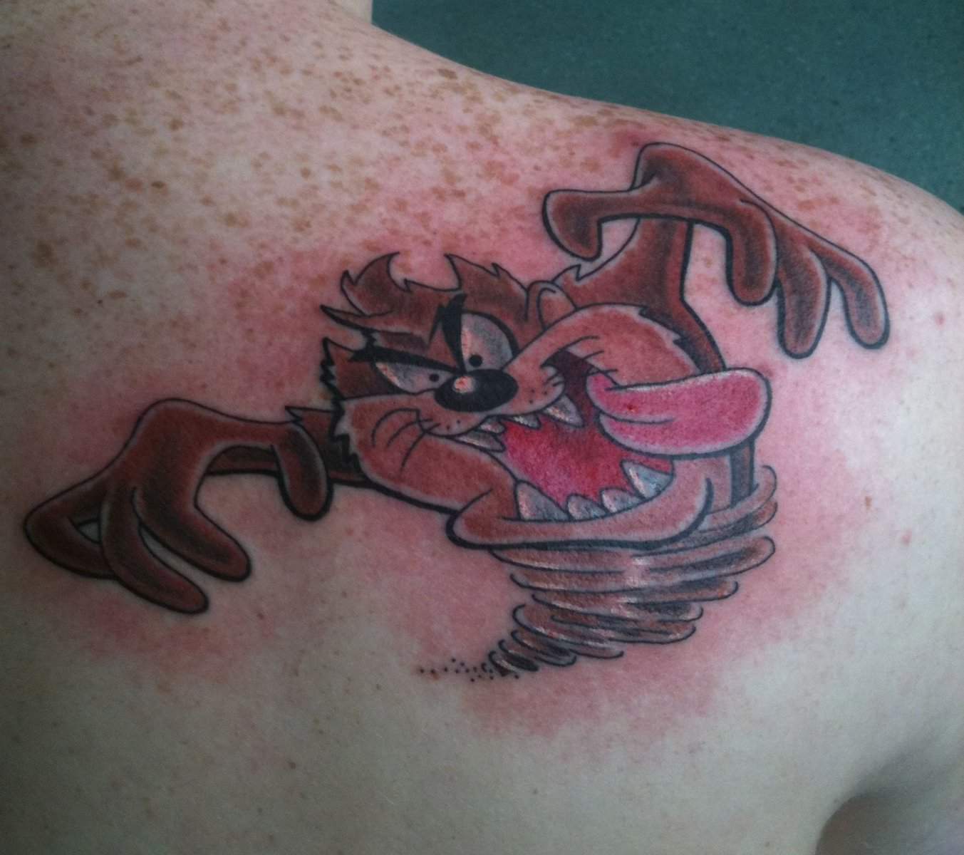 Motyw diabła tasmańskiego jest bardzo popularny wśród tatuaży. Taki wzór idealnie będzie wyglądał na plecach. Wystarczy spojrzeć na wiele przykładów.