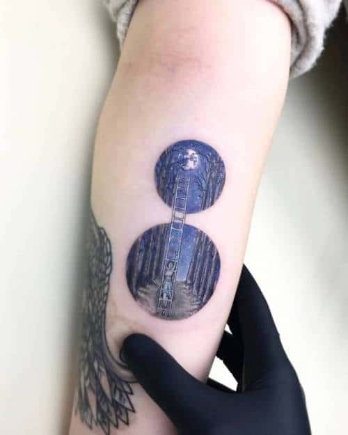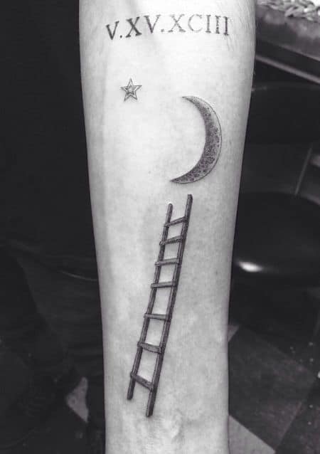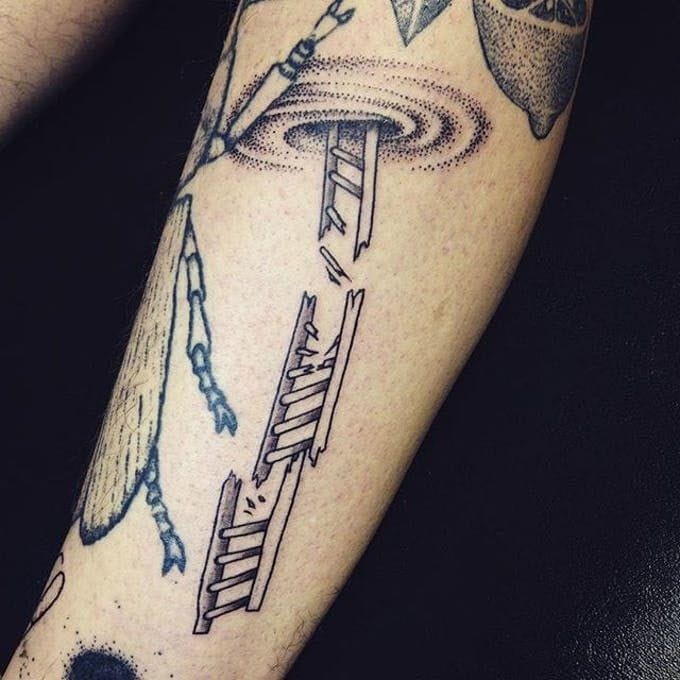 Motyw drabiny jest bardzo popularny wśród tatuaży. Taki wzór idealnie będzie wyglądał na przedramieniu. Wystarczy spojrzeć na wiele przykładów.