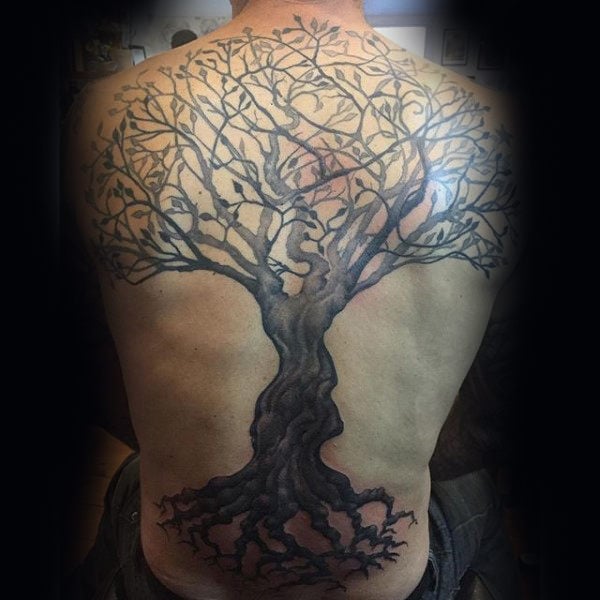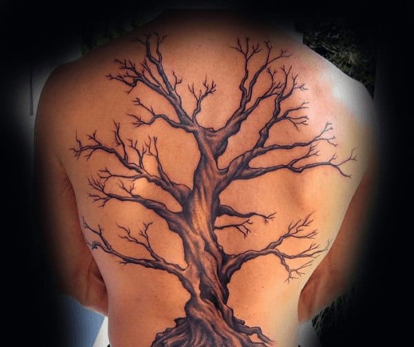 Drzewo na plecach to idealny motyw, aby wyrazić siebie. Pasuje tam zarówno wielobarwny jak i i jednokolorowy tatuaż.