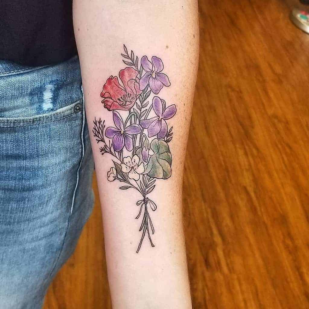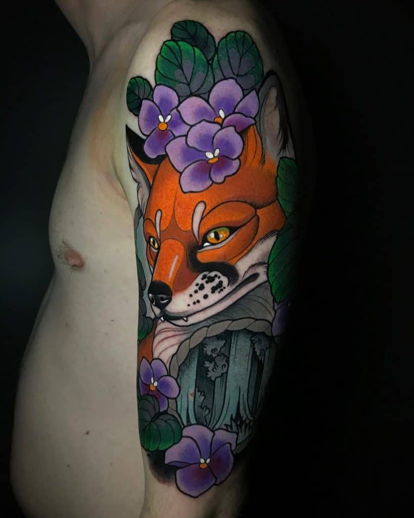 Fiołek jako tatuaż sprawdzi się w różnej stylistyce. Może to być kolorowy lub jednobarwny wzór. Fiołek i tatuaż może symbolizować dla każdej osoby coś innego. To idealna forma wyrażania siebie.