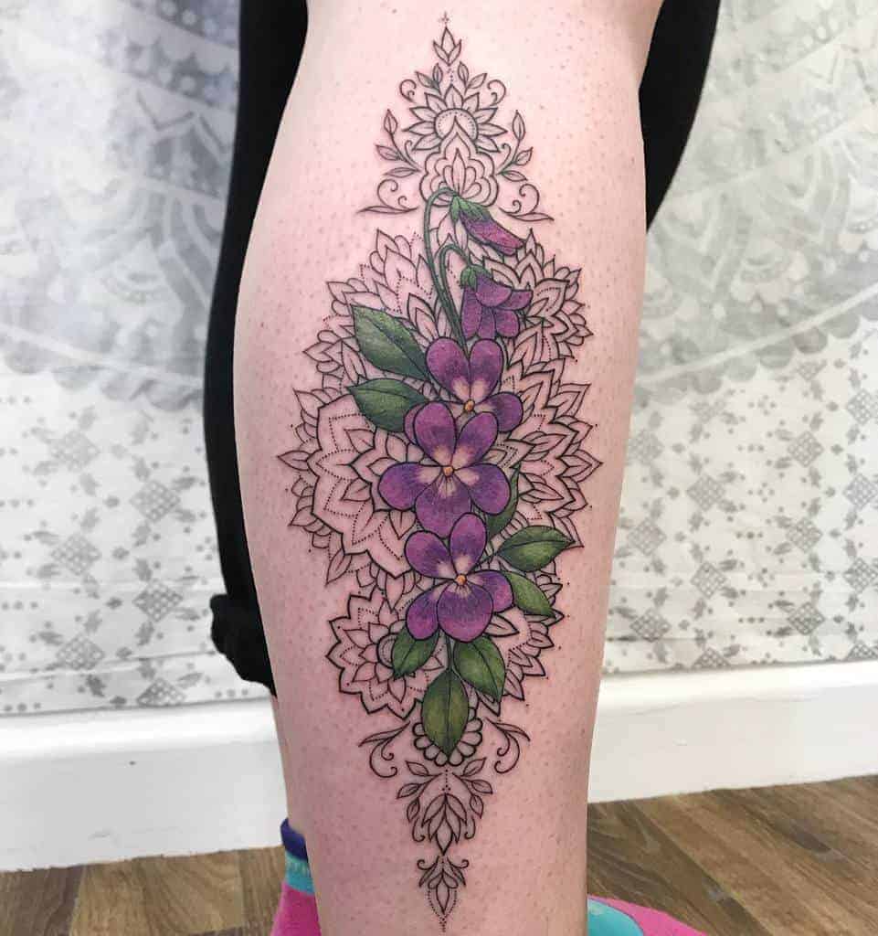 Fiołek to jeden z najpopularniejszych i najmodniejszych wzorów tatuażu. Motyw z fiołkiem doskonale wygląda na różnych częściach ciała.