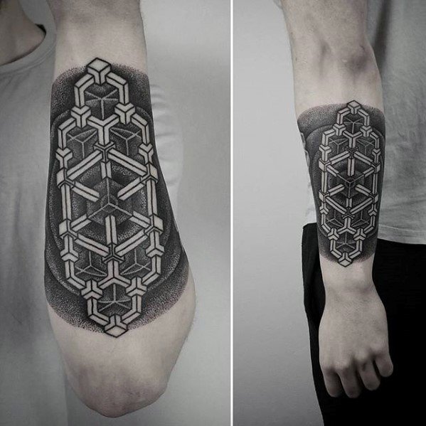 Geometryczne wzory są bardzo popularny wśród tatuaży. Taki motyw idealnie będzie wyglądał na przedramieniu. Wystarczy spojrzeć na wiele przykładów.