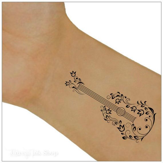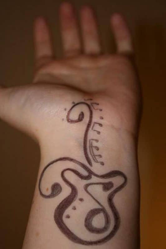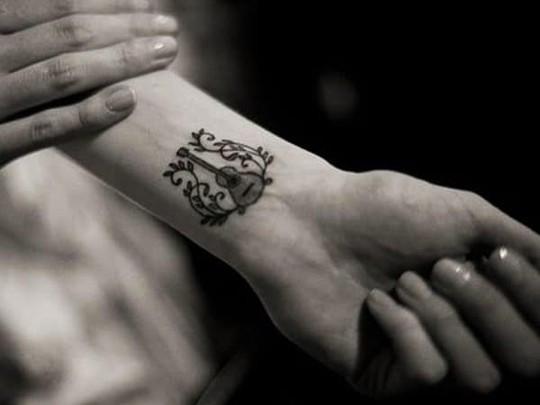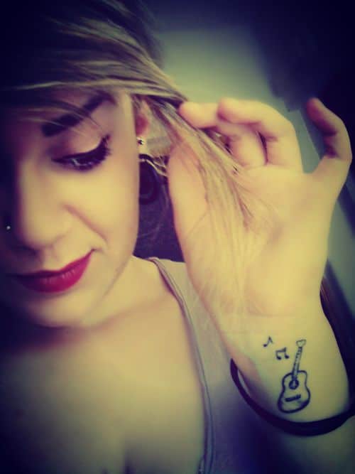 Motyw gitary jest bardzo popularny wśród tatuaży. Taki wzór idealnie będzie wyglądał na nadgarstku. Wystarczy spojrzeć na wiele przykładów.