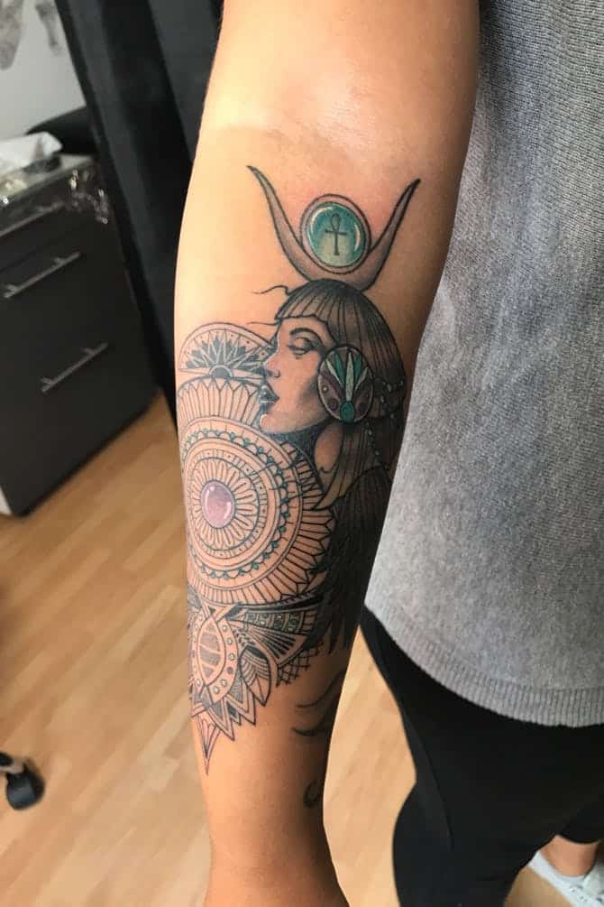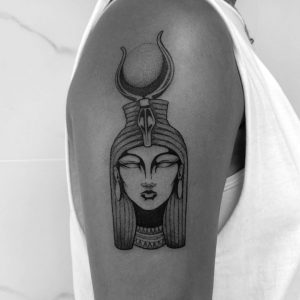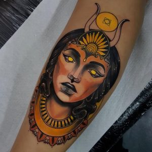 Hathor to jeden z najpopularniejszych i najmodniejszych wzorów tatuażu. Motyw z Hathorem doskonale wygląda na różnych częściach ciała.