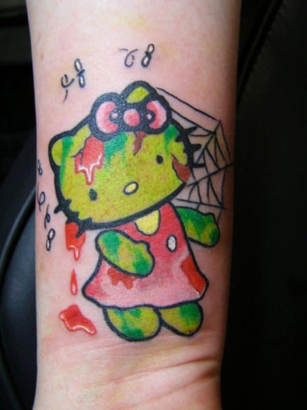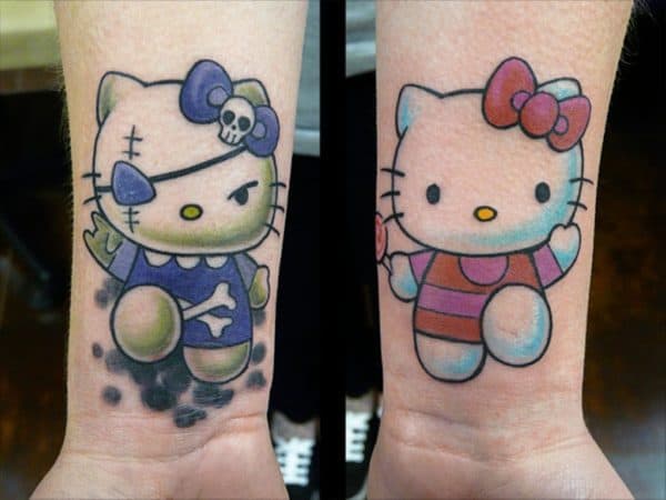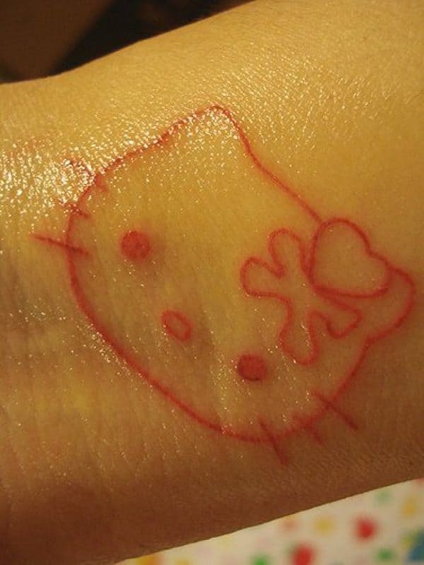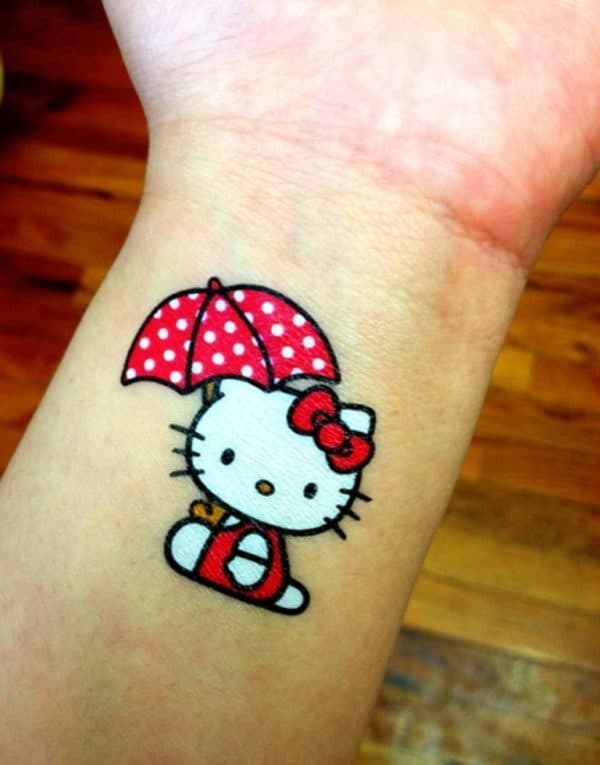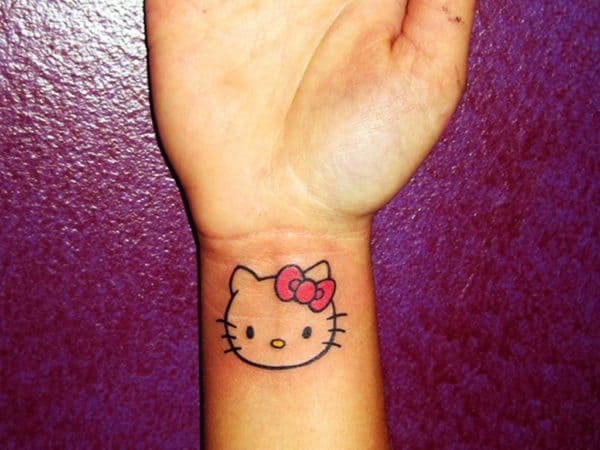 Motyw Hello Kitty jest bardzo popularny wśród tatuaży. Taki wzór idealnie będzie wyglądał na nadgarstku. Wystarczy spojrzeć na wiele przykładów.
