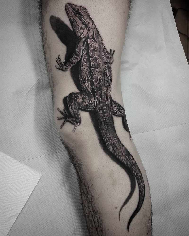Tatuaż jaszczurki będzie prezentował się dobrze na plecach, na klatce piersiowej, czy też nogach lub rękach. Motyw jaszczurki idealnie pasuje zarówno do tatuażu jednokolorowego jak i wielobarwnego. Wszystko zależy od naszego pomysłu, wizji i podpowiedzi tatuatora.