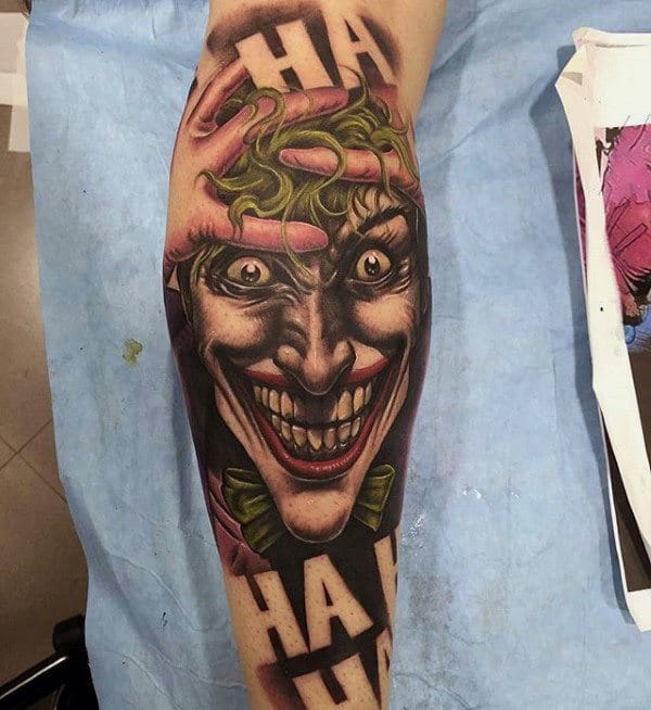 Tatuaże na nodze są bardzo modne. Nosi je wiele osób. Część z nich wybiera motyw jokera. Prezentuje on się na znakomicie na tej części ciała.