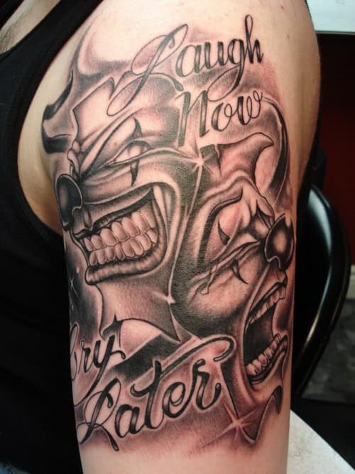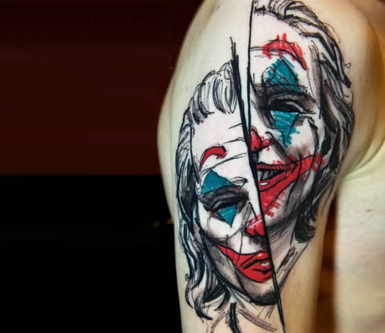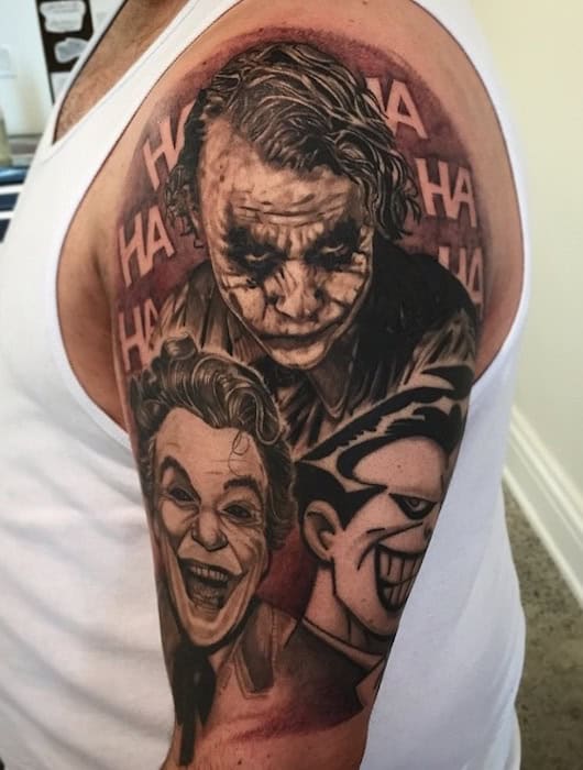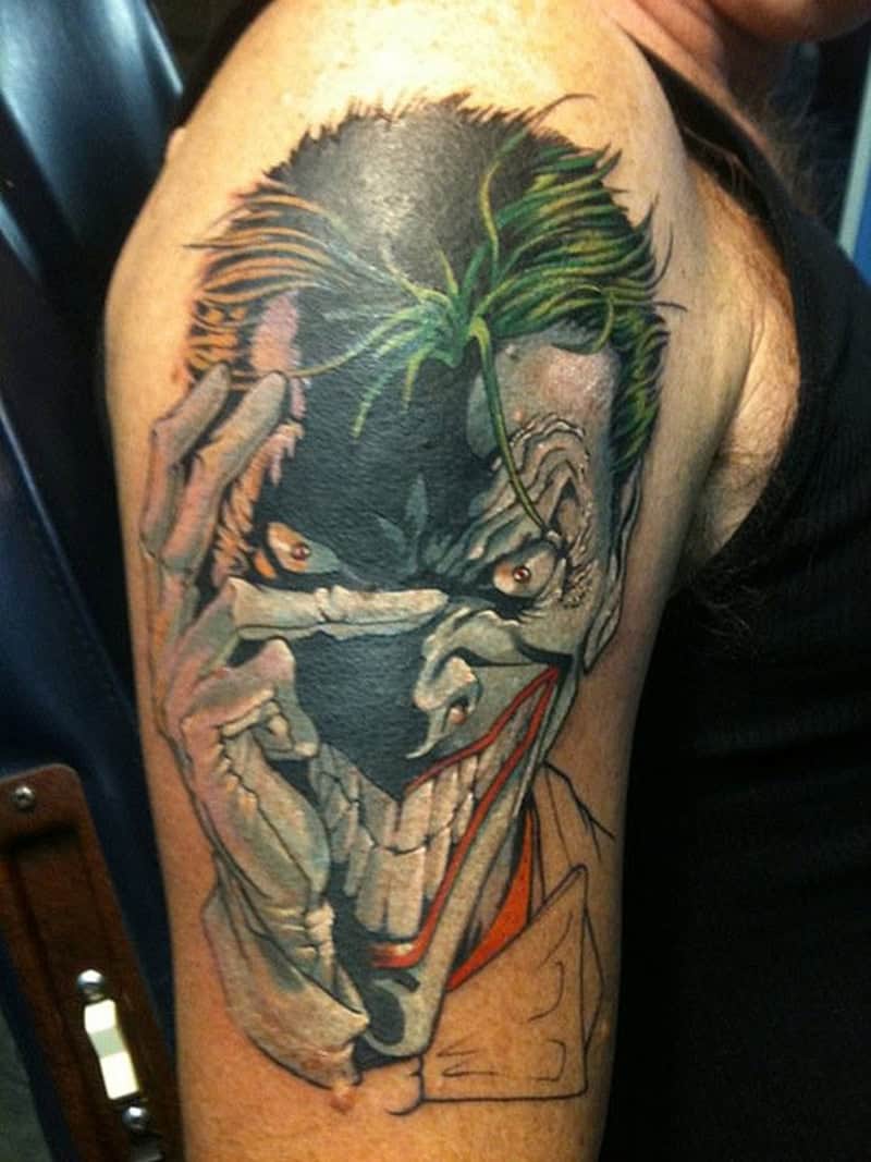 Motyw Jokera jest bardzo popularny wśród tatuaży. Taki wzór idealnie będzie wyglądał na ramieniu. Wystarczy spojrzeć na wiele przykładów.