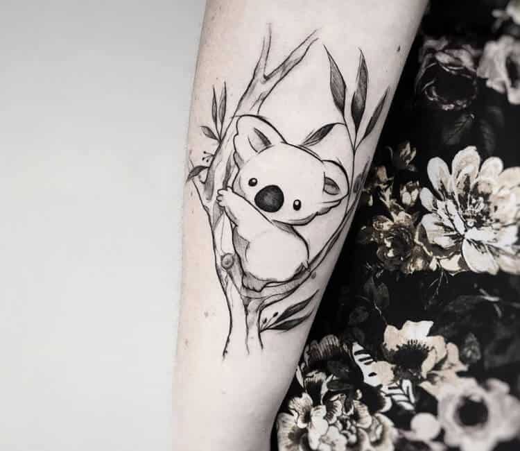 Motyw koali jest bardzo popularny wśród tatuaży. Taki wzór idealnie będzie wyglądał na przedramieniu. Wystarczy spojrzeć na wiele przykładów.