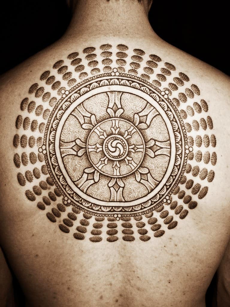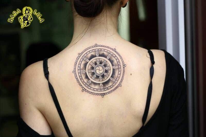 Koło Dharmy jako tatuaż sprawdzi się w różnej stylistyce. Może to być kolorowy lub jednobarwny wzór. Koło Dharmy i tatuaż może symbolizować dla każdej osoby coś innego. To idealna forma wyrażania siebie.