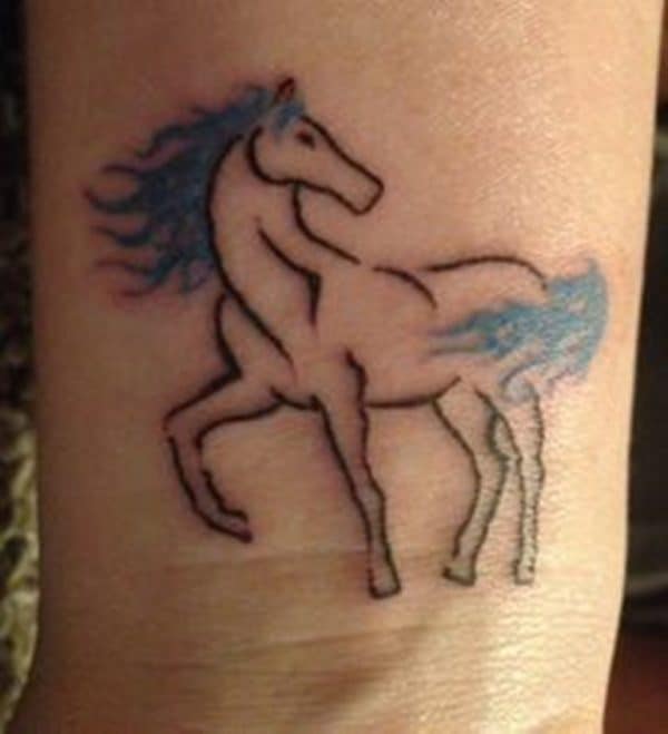 Motyw konia jest bardzo popularny wśród tatuaży. Taki wzór idealnie będzie wyglądał na nadgarstku. Wystarczy spojrzeć na wiele przykładów.
