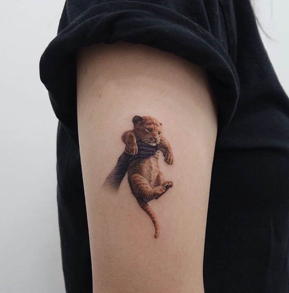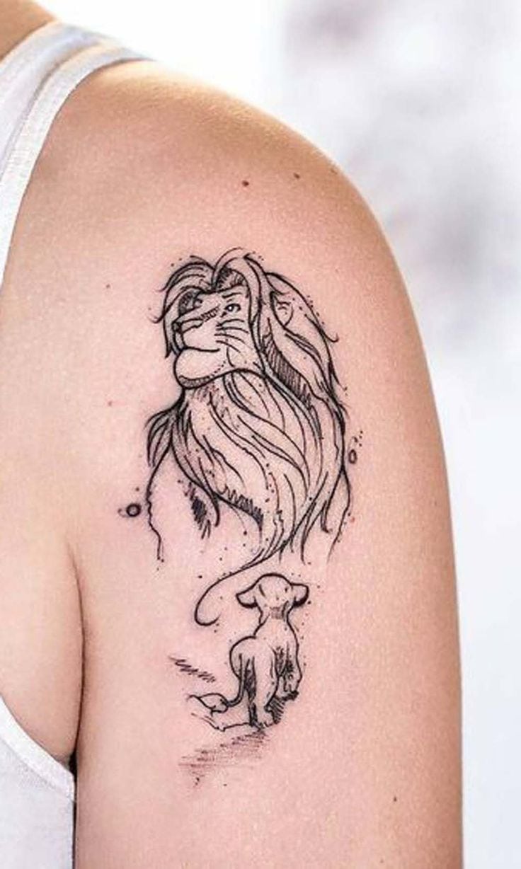 Król lew na tej części ciała będzie wyglądać znakomicie. Dotyczy to kolorowego jak i jednobarwnego tatuażu. Zapewne zwróci on uwagę wielu osób.