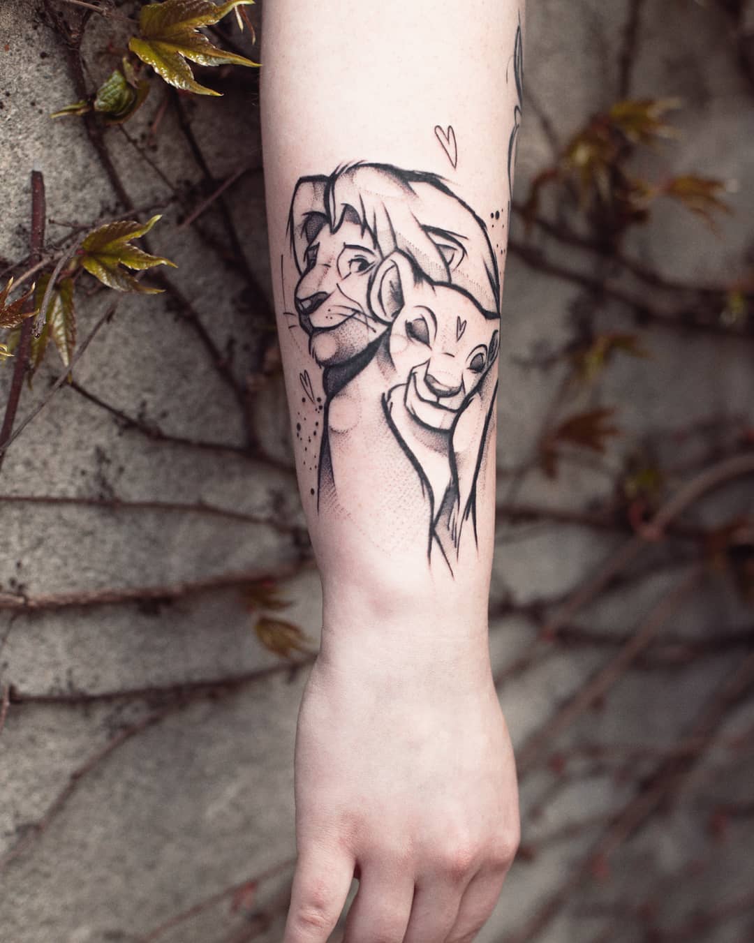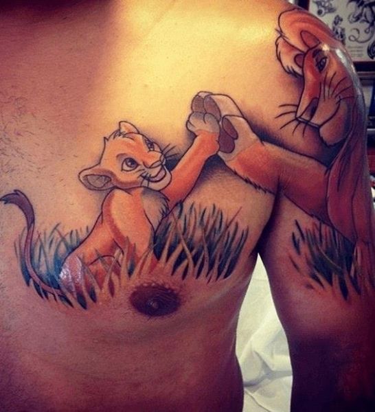Tatuaż Simby będzie prezentował się dobrze na plecach, na klatce piersiowej, czy też nogach lub rękach. Motyw Simby i innych postaci z bajki „Król Lew” idealnie pasuje zarówno do tatuażu jednokolorowego jak i wielobarwnego. Wszystko zależy od naszego pomysłu, wizji i podpowiedzi tatuatora.