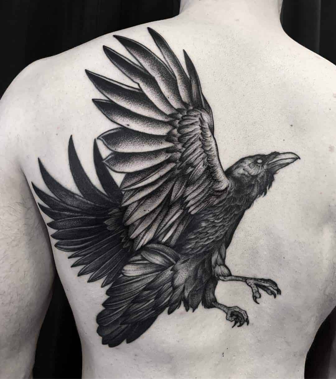 Tatuaż kruka będzie prezentował się dobrze na plecach, na klatce piersiowej, czy też nogach lub rękach. Motyw kruka idealnie pasuje zarówno do tatuażu jednokolorowego jak i wielobarwnego (dodatki). Wszystko zależy od naszego pomysłu, wizji i podpowiedzi tatuatora.