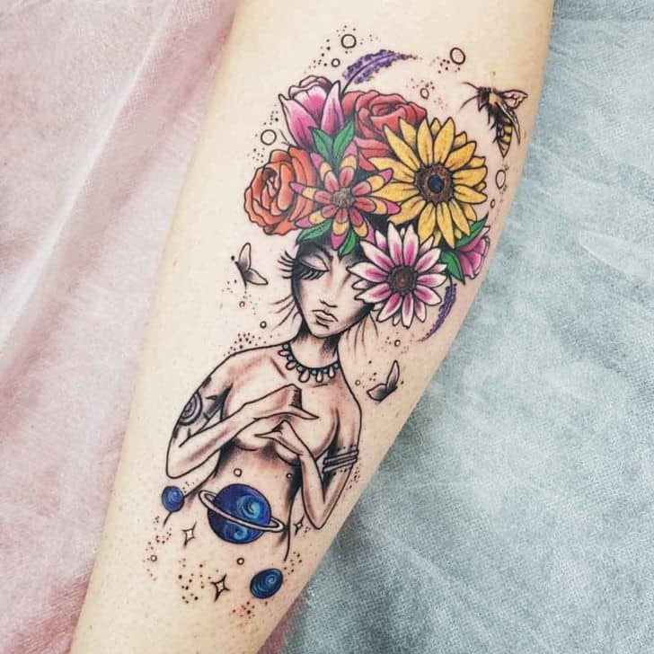 Kwiaty na tej części ciała będzie wyglądać znakomicie. Dotyczy to kolorowego jak i jednobarwnego tatuażu. Zapewne zwróci on uwagę wielu osób.