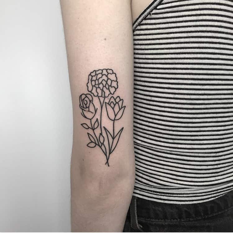 Motyw kwiatów jest bardzo popularny wśród tatuaży. Taki wzór idealnie będzie wyglądał na ramieniu. Wystarczy spojrzeć na wiele przykładów.