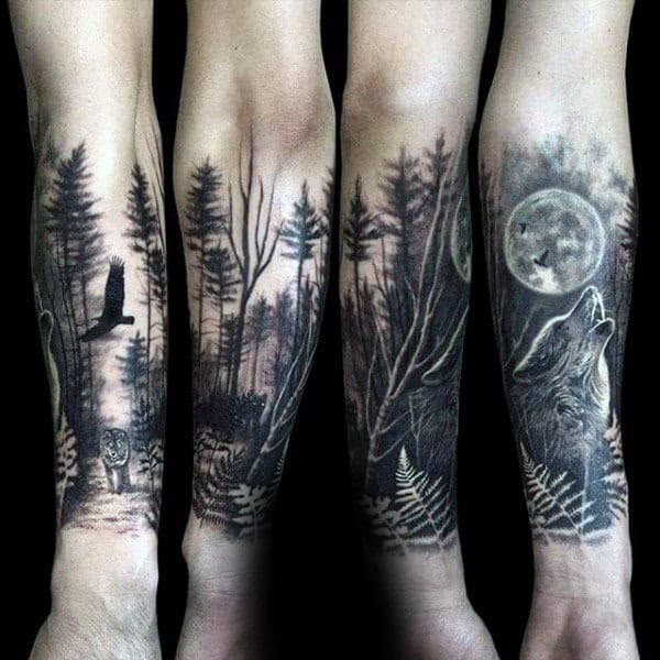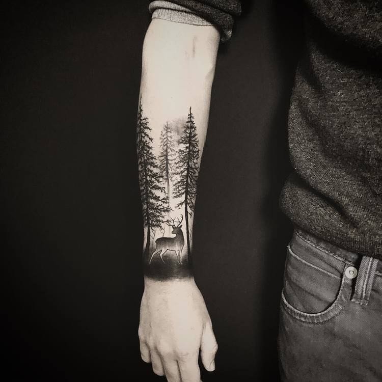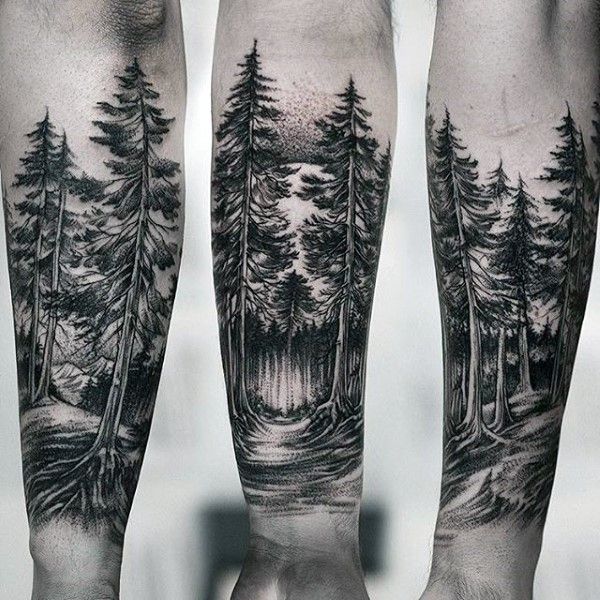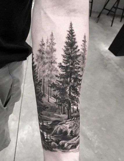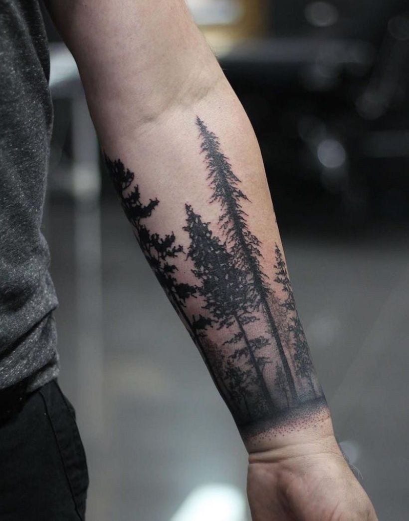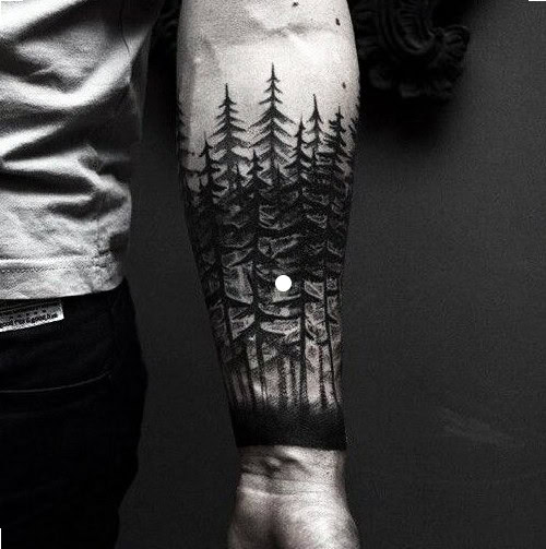 Motyw lasu jest bardzo popularny wśród tatuaży. Taki wzór idealnie będzie wyglądał na przedramieniu. Wystarczy spojrzeć na wiele przykładów.
