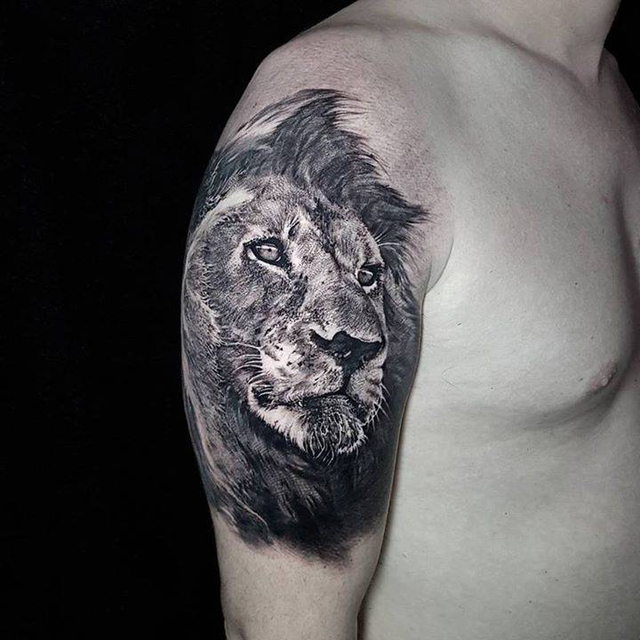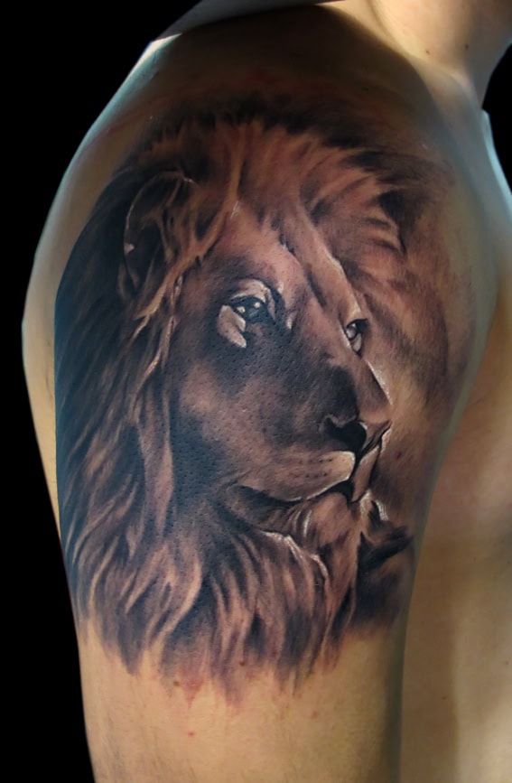 Motyw lwa jest bardzo popularny wśród tatuaży. Taki wzór idealnie będzie wyglądał na ramieniu. Wystarczy spojrzeć na wiele przykładów.