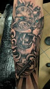 Tatuaż z wilkiem na ramieniu wygląda stylowo. Również tatuaże z lwami na klatce piersiowej, nodze, czy plecach będą prezentowały się znakomicie.