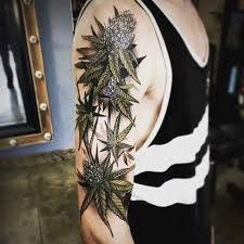 Motyw Marihuany jest bardzo popularny wśród tatuaży. Taki wzór idealnie będzie wyglądał na ramieniu. Wystarczy spojrzeć na wiele przykładów.