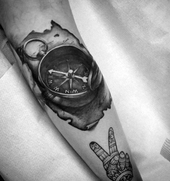 Mały kompas to bardzo popularny wzór tatuażu. Nosi go wiele ludzi i trzeba przyznać, że wyglądają one znakomicie. Zarówno jako kolorowy lub jednokolorowy tatuaż.