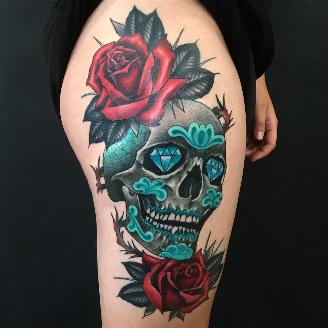Meksykańska czaszka wygląda znakomicie na różnych częściach ciała. Taki motyw tatuażu prezentuje się znakomicie na udzie, łydce, ramieniu, czy też klatce piersiowej. Tatuaż z meksykańską czaszką będzie wyglądał znakomicie u kobiety jak i u mężczyzny.