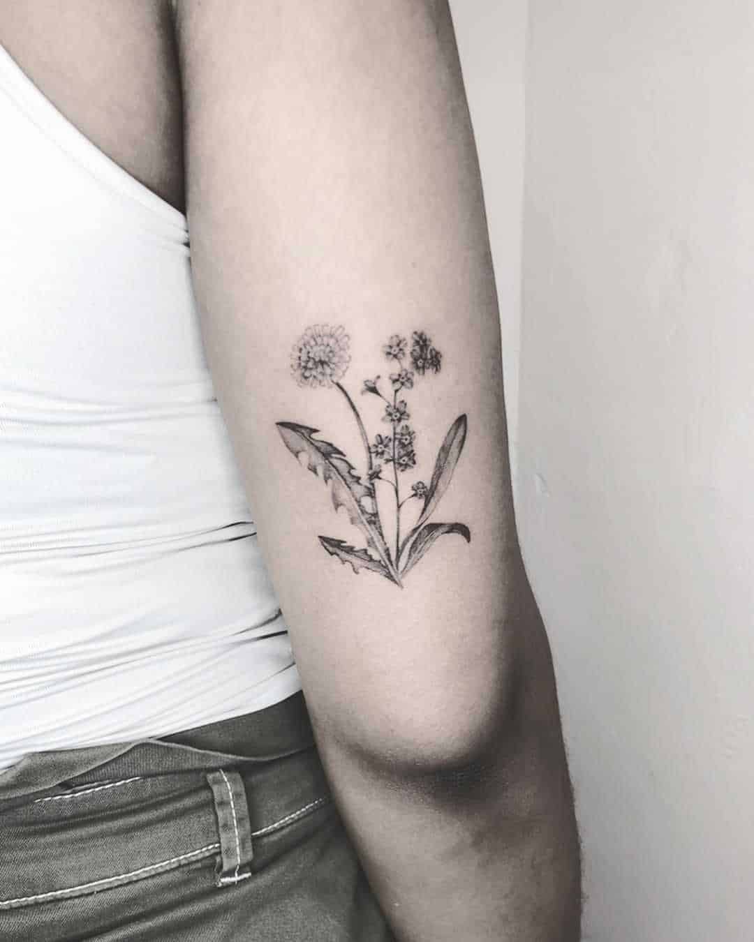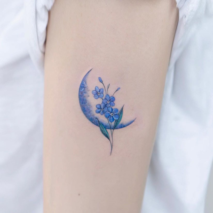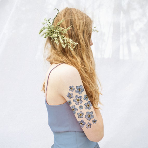 - Kwiatowy rękaw z niezapominajką – jeśli marzysz o większym tatuażu, rozważ tatuaż w formie rękawa, gdzie niezapominajka będzie jednym z głównych elementów w otoczeniu innych kwiatów.