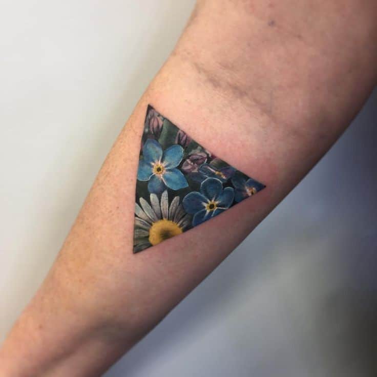 - Realistyczny tatuaż niezapominajka – tatuaże w stylu realistycznym wiernie oddają piękno tego kwiatka, podkreślając każdy detal. Taki tatuaż dobrze prezentuje się na przedramieniu lub ramieniu.