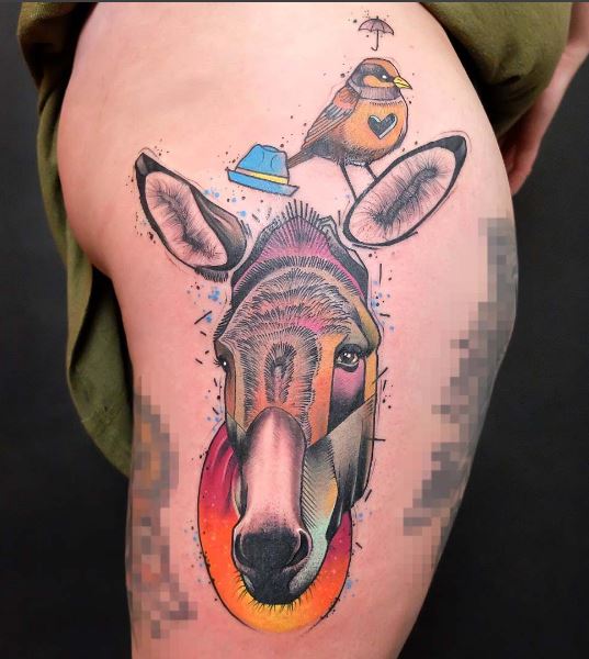Tatuaż z osłem przykuje uwagę wielu osób. Zapewne nasz tatuator postara się, aby to wyjątkowe dla nas stworzenie (być może oddające nasz charakter) wyglądało znakomicie jako tatuaż.
