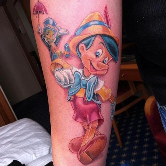 Tatuaż Pinokia będzie prezentował się dobrze na plecach, na klatce piersiowej, czy też nogach lub rękach. Motyw Pinokia idealnie pasuje zarówno do tatuażu jednokolorowego jak i wielobarwnego. Wszystko zależy od naszego pomysłu, wizji i podpowiedzi tatuatora.