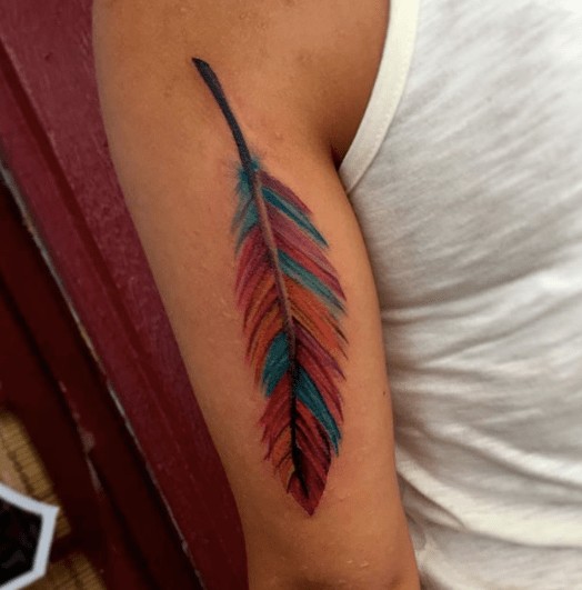 Tatuaż z piórem na ramieniu wygląda stylowo. Również tatuaże z piórem na klatce piersiowej, nodze, czy plecach będą prezentowały się znakomicie.