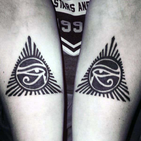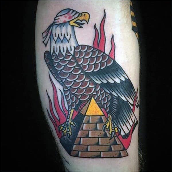 Piramidy to bardzo popularny wzór tatuażu. Nosi go wiele ludzi i trzeba przyznać, że wyglądają one znakomicie. Zarówno jako kolorowy lub jednokolorowy tatuaż.
