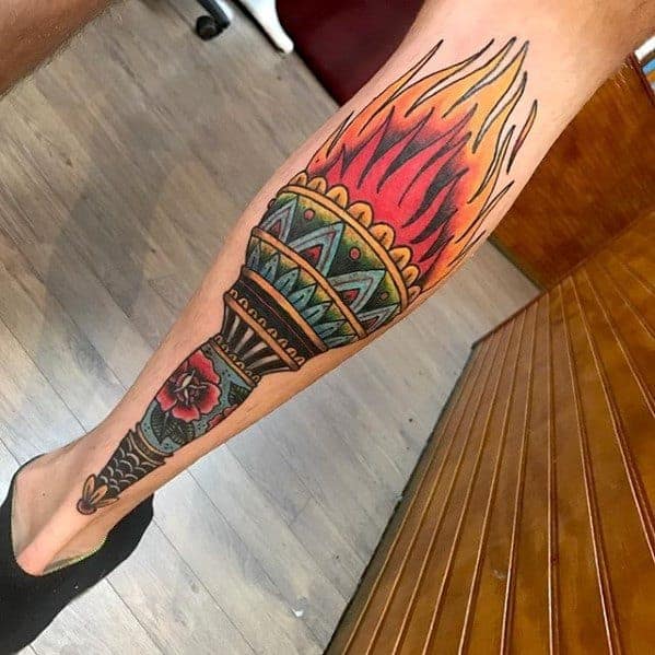 Pochodnia to jeden z najpopularniejszych i najmodniejszych wzorów tatuażu. Motyw z pochodnią doskonale wygląda na różnych częściach ciała.