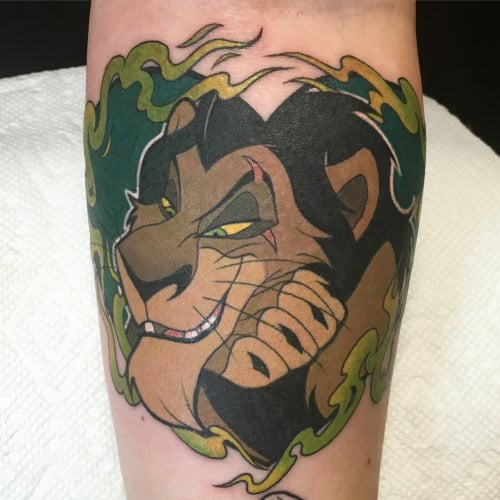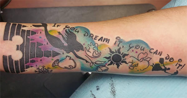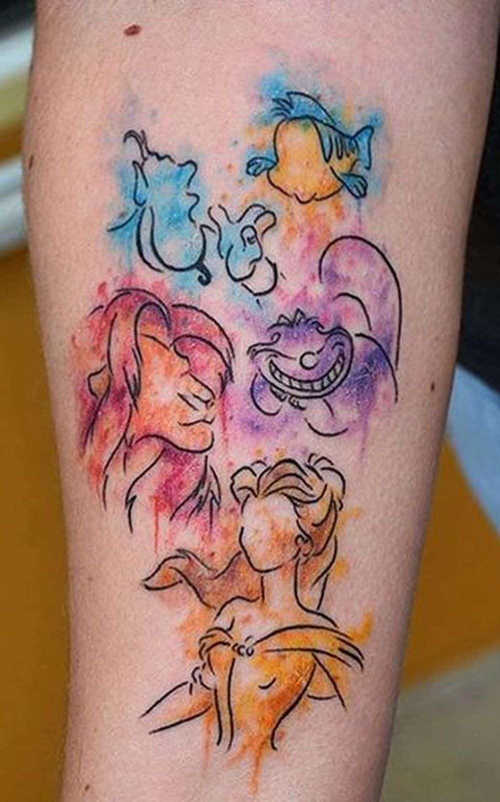 Motyw postaci Disneya jest bardzo popularny wśród tatuaży. Taki wzór idealnie będzie wyglądał na przedramieniu. Wystarczy spojrzeć na wiele przykładów.