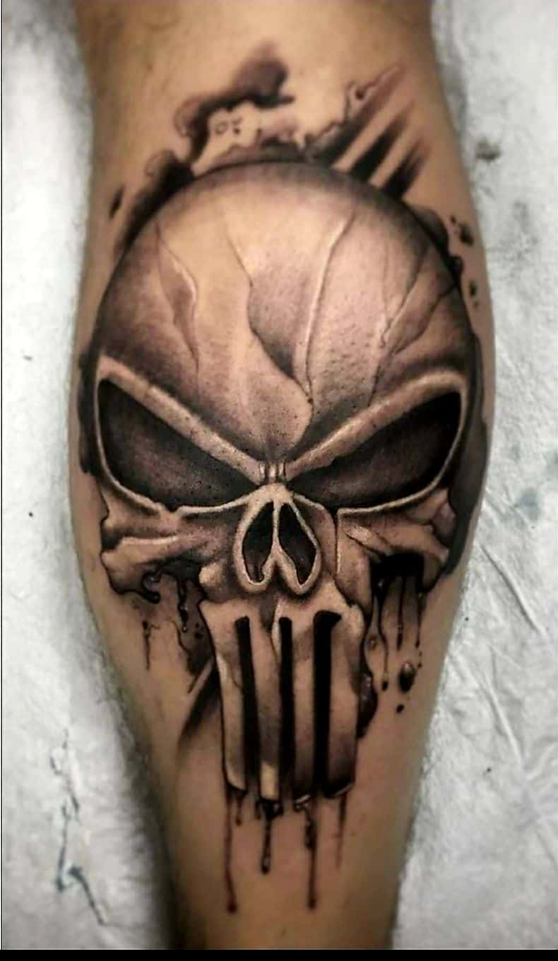 Tatuaże na nodze są bardzo modne. Nosi je wiele osób. Część z nich wybiera motyw Punishera. Prezentuje on się na znakomicie na tej części ciała.