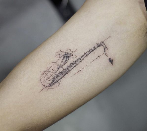 Saksofon to jeden z najpopularniejszych i najmodniejszych wzorów tatuażu. Motyw z saksofonem doskonale wygląda na różnych częściach ciała.
