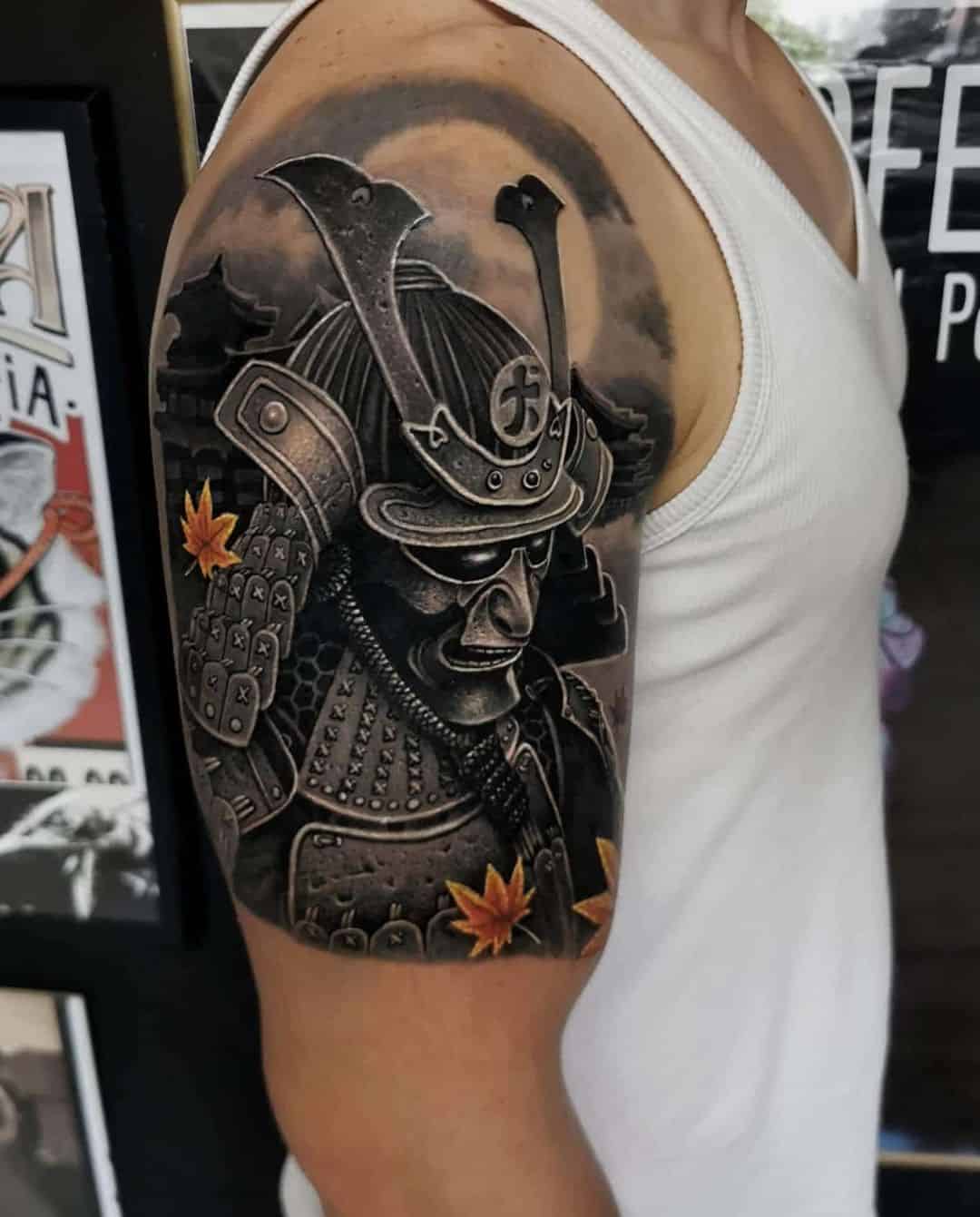 Motyw Samuraja jest bardzo popularny wśród tatuaży. Taki wzór idealnie będzie wyglądał na ramieniu. Wystarczy spojrzeć na wiele przykładów.