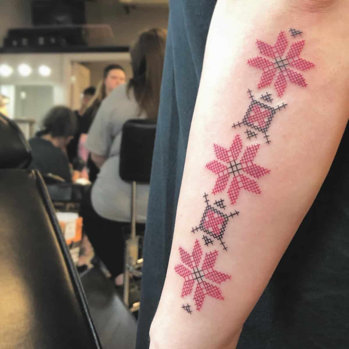 To idealne połączenie. Tatuaże wykonane tą metodą wyglądają oszałamiająco i stylowo. Wystarczy spojrzeć na poniższą galerię wzorów ze ściegiem krzyżowym.