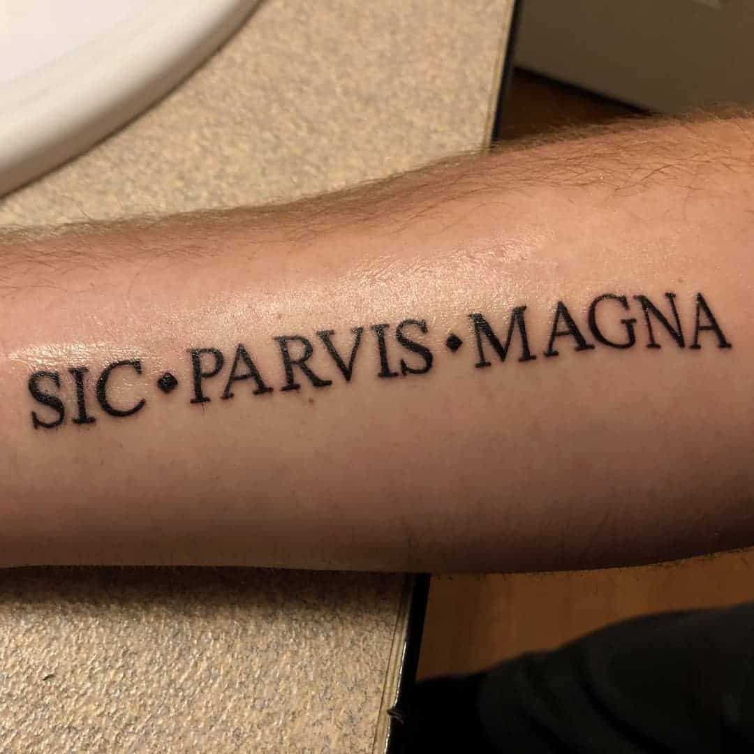 Zobacz jak prezentują się tatuaże Sic parvis magna na ciele wykonane przez prawdziwych artystów.