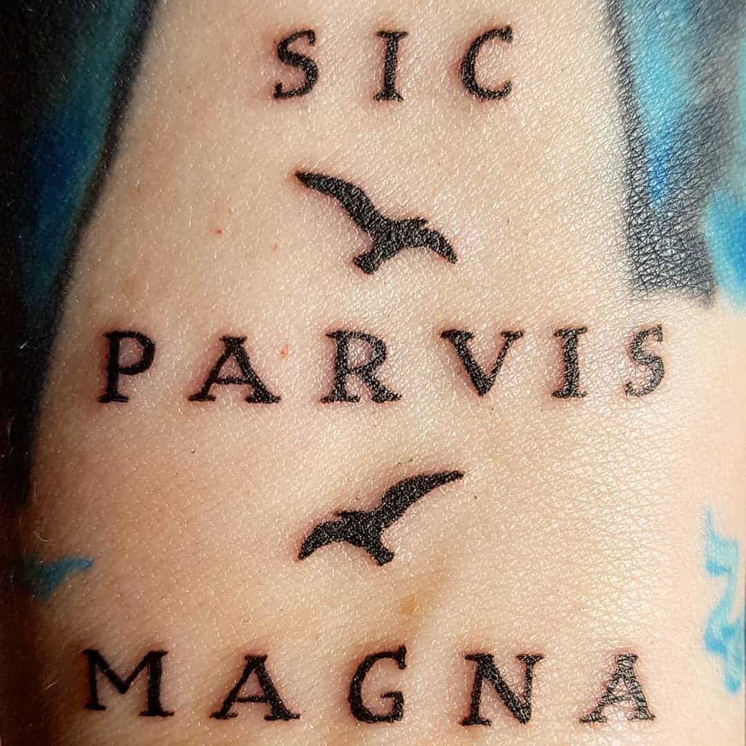 Sic parvis magna (wielkość od skromnych początków) to jeden z najpopularniejszych i najmodniejszych wzorów tatuażu. Motyw Sic parvis magna doskonale wygląda na różnych częściach ciała.