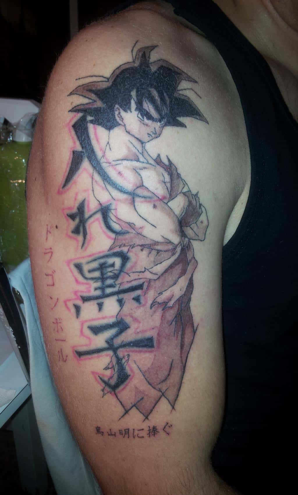 Motyw Son Goku jest bardzo popularny wśród tatuaży. Taki wzór idealnie będzie wyglądał na ramieniu. Wystarczy spojrzeć na wiele przykładów.